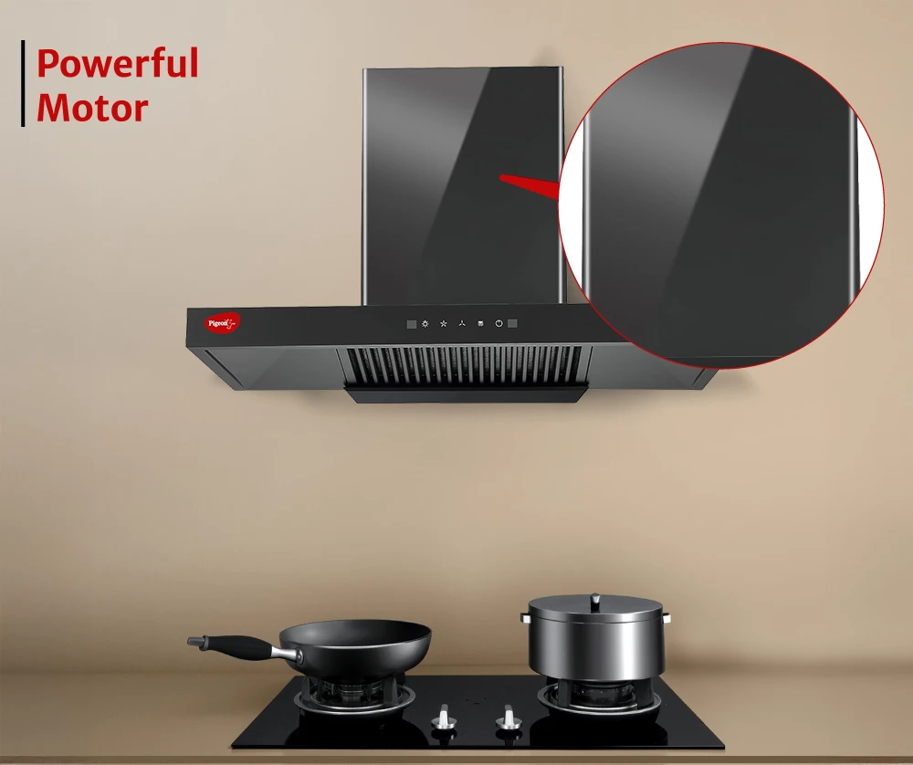 "T-shape filterless kitchen chimney with modern design. Ensures powerful suction and low-maintenance operation for daily cooking."