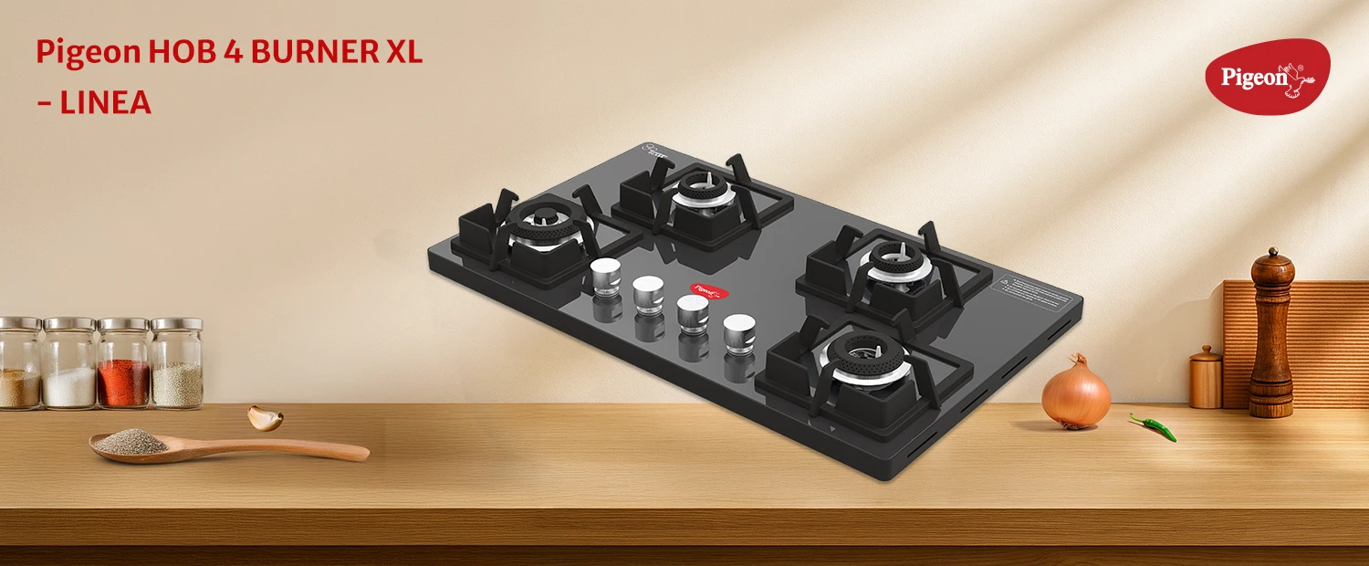 • Package Contents: 1 - Pigeon Hob 4 Burner Xl - Linea | Warranty: 5 Year on Glass for Quality Assurance