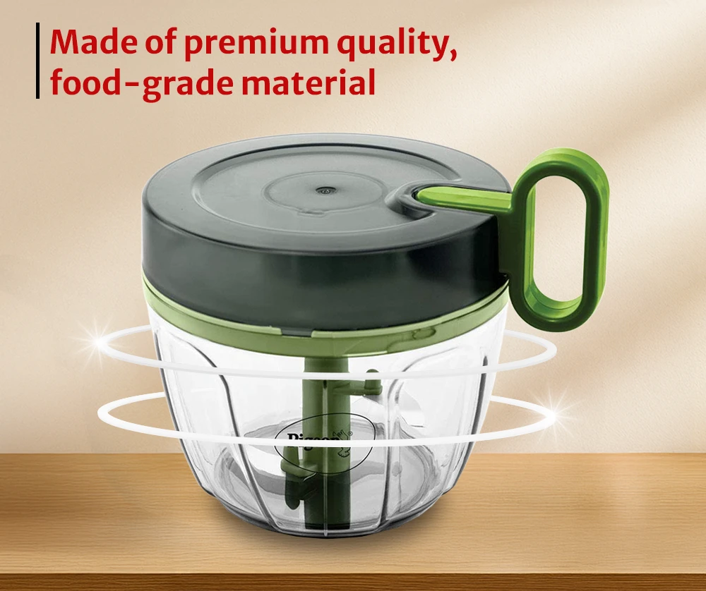 - Strong & Safe - The material of the chopper is nontoxic plastic. The sharp stainless steel blades are fast to chop and mince. The bowl is BPA free and safe for containing food. No electricity required.