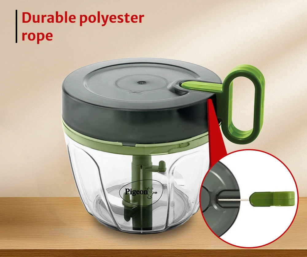 - Space Saving & Portable - Pigeon Handy Chopper Pro we can store very easily in our kitchen. This manual food chopper has advantage of simple structure, compact value, and convenience. 650 ml capacity is great for a family.