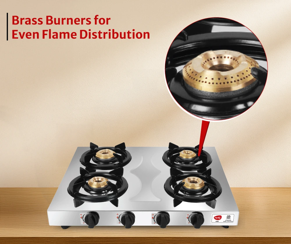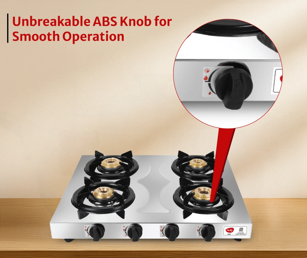 The stainless steel 4-burner cooktop offers durability, elegant design, and efficient performance. With powerful burners and easy cleaning, it ensures smooth, fast, and convenient cooking for everyday needs.