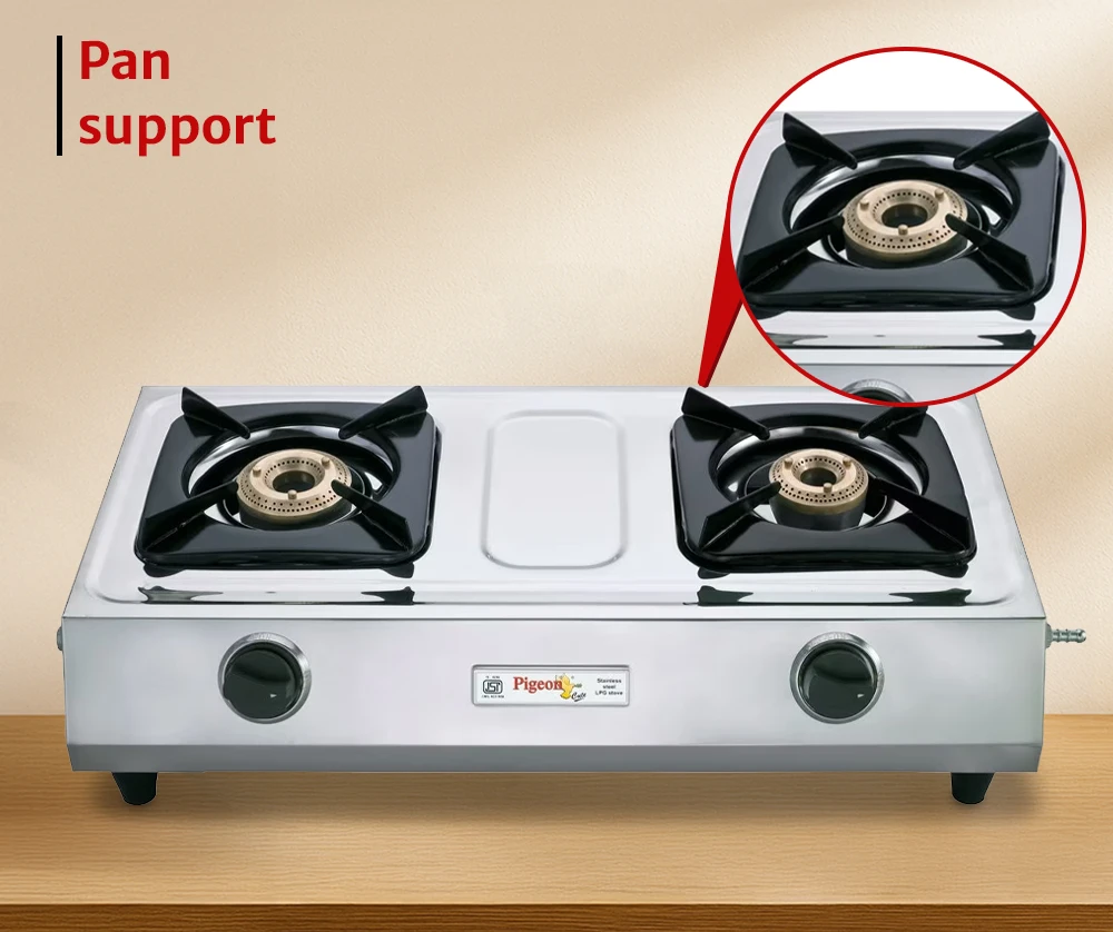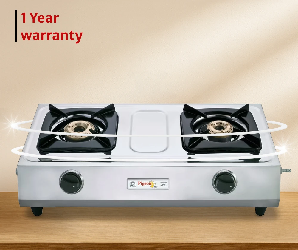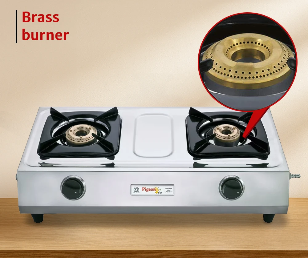 Classic stainless steel gas stove with strong construction and smooth burner operation.