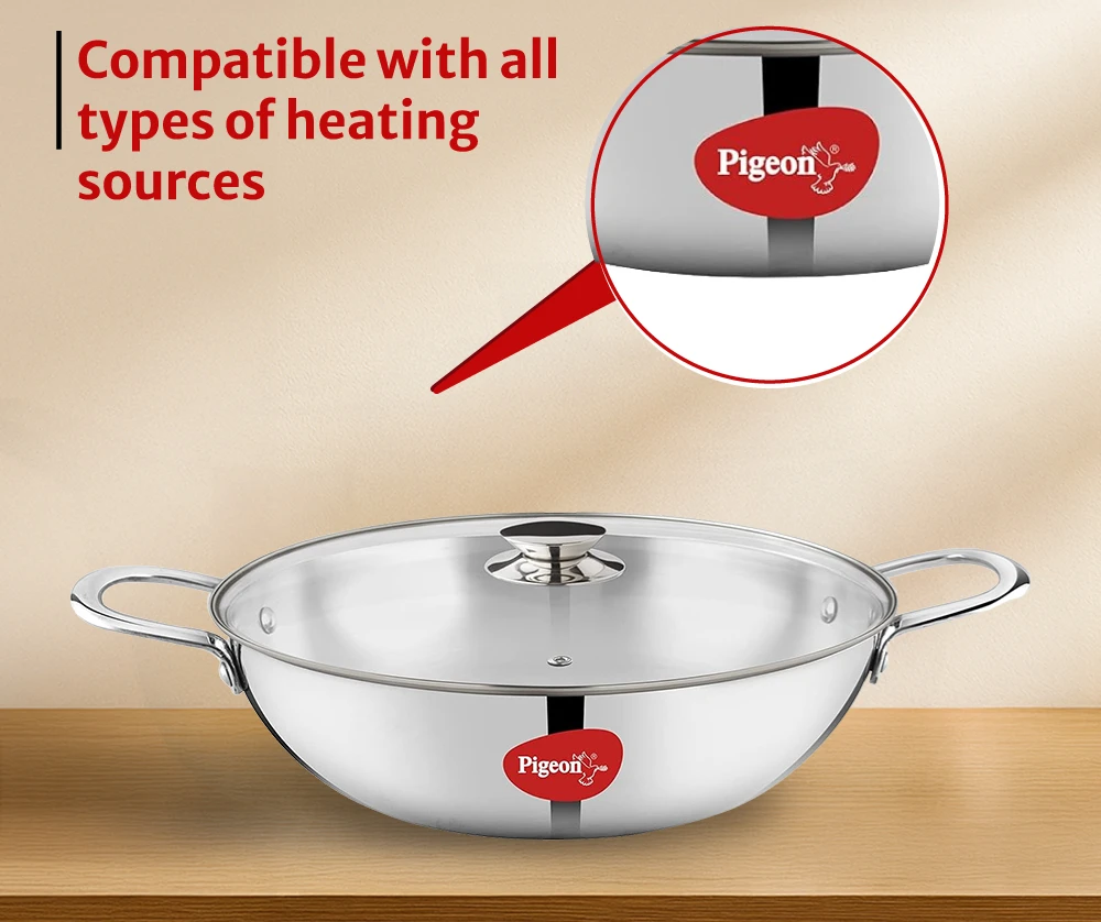 Base: Compatible with all types of heating sources. 3 Layer Body: Stainless Steel 304, Aluminium 1050, Stainless Steel 430.