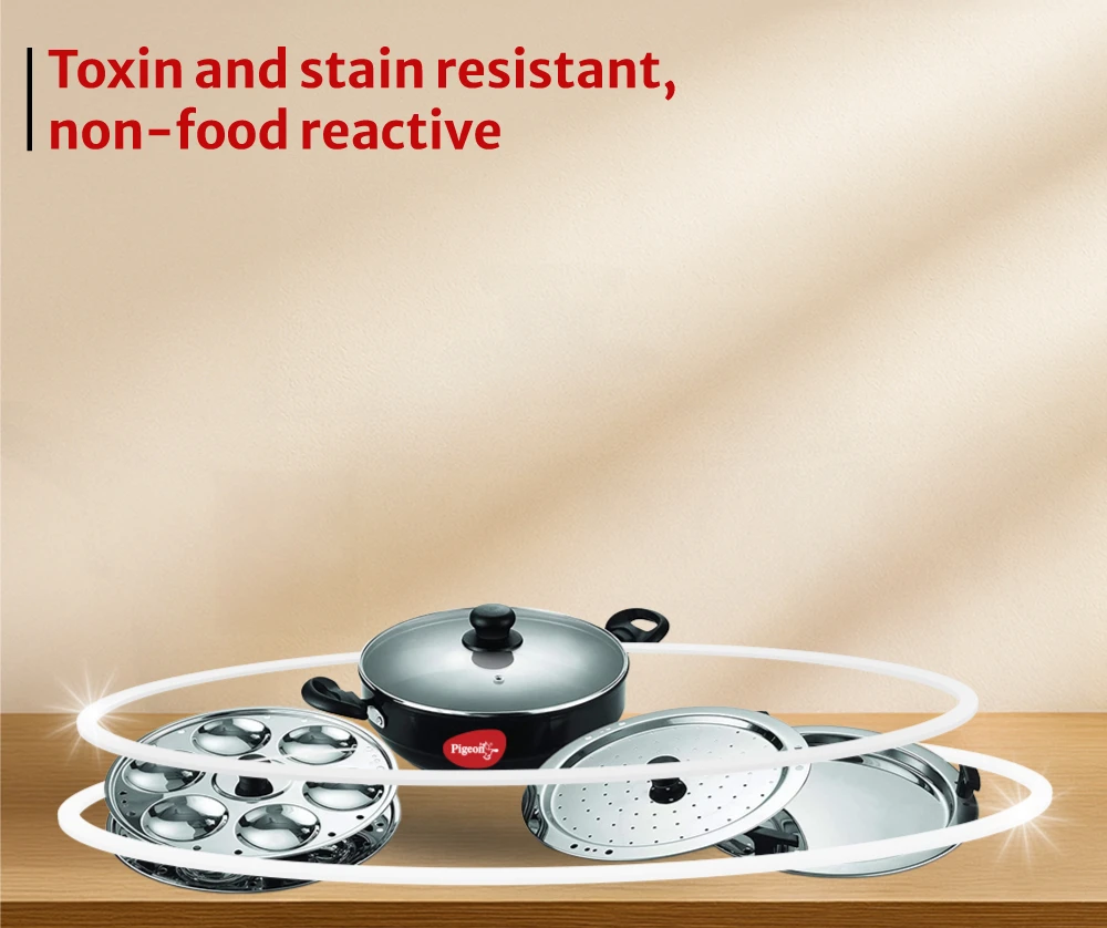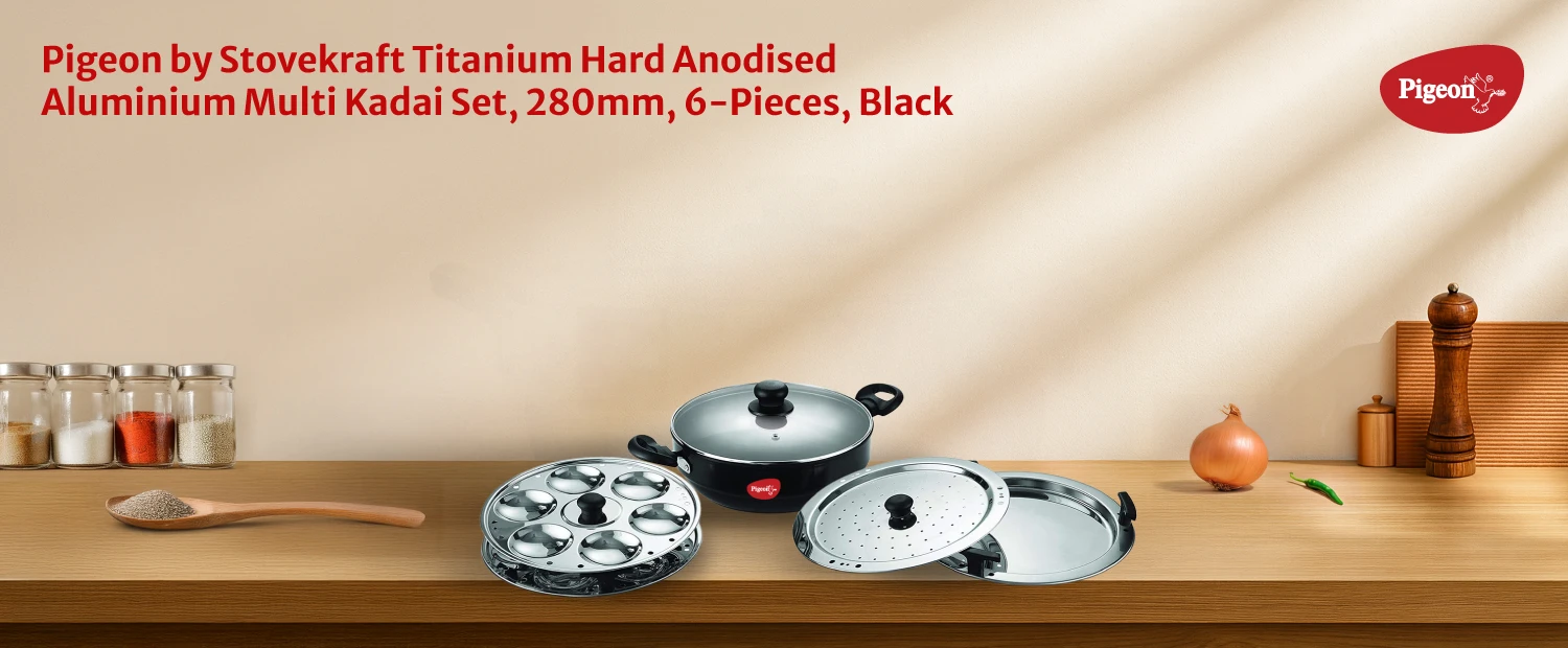 "Multi-purpose hard anodised kadai with robust build. Designed for consistent cooking and enhanced durability."