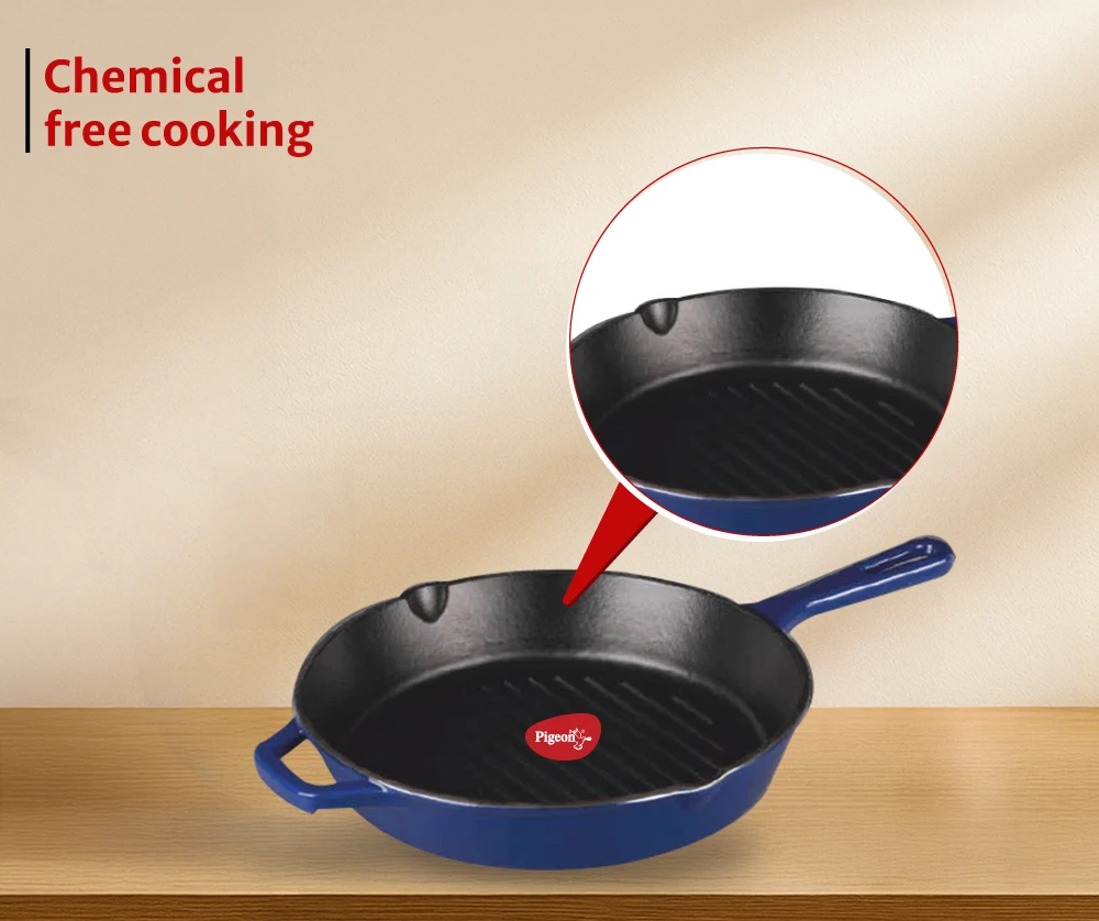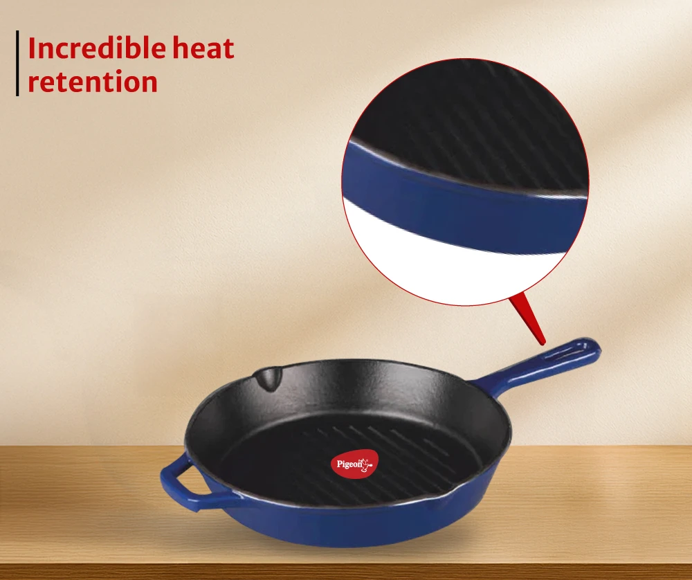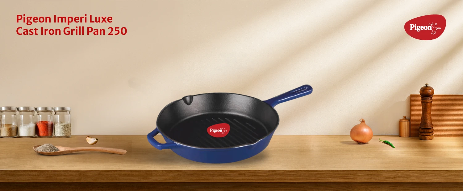 "High-quality cast iron grill pan with refined finish. Ensures even grilling and long-lasting performance."