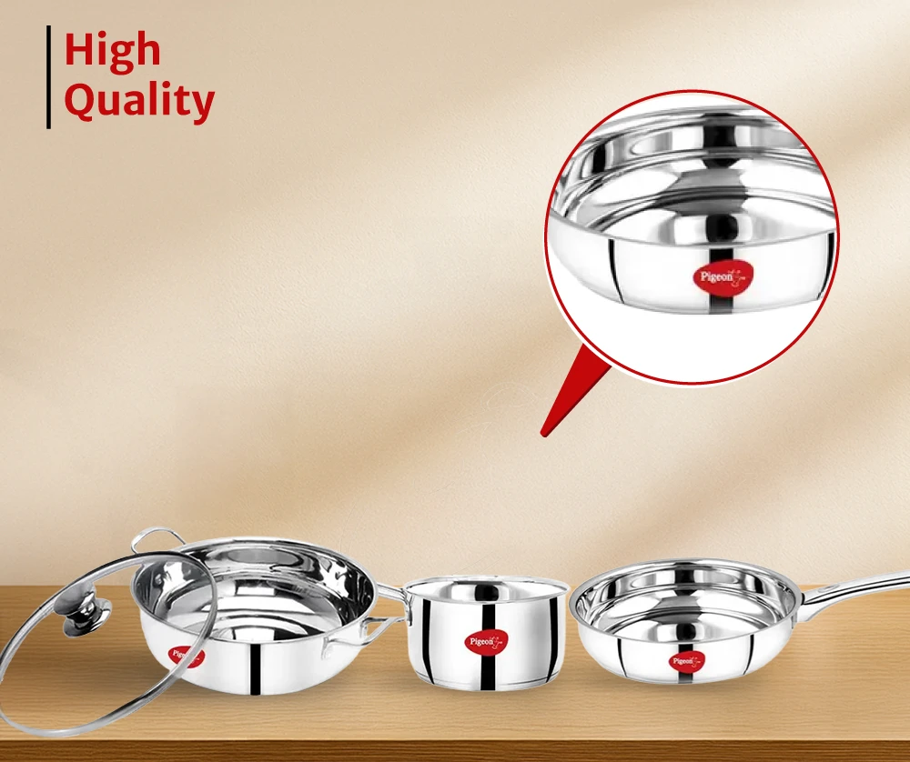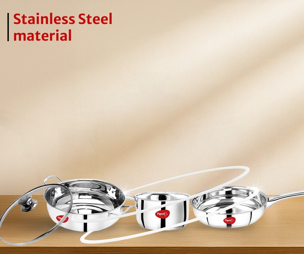 Home / pigeon / cooking / cookware / spl-stainless-steel-3-pcs-set-kadai-220-frypan-220-sauce-pan-160
