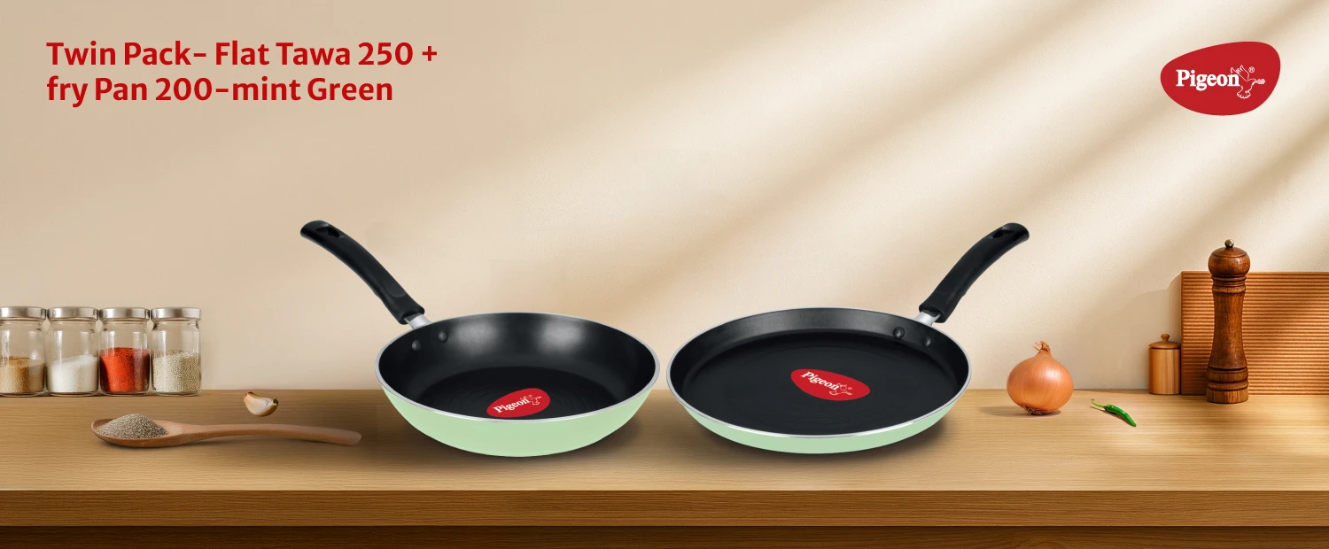 Twin Pack-flat Tawa 250 + fry Pan 200-mint Green