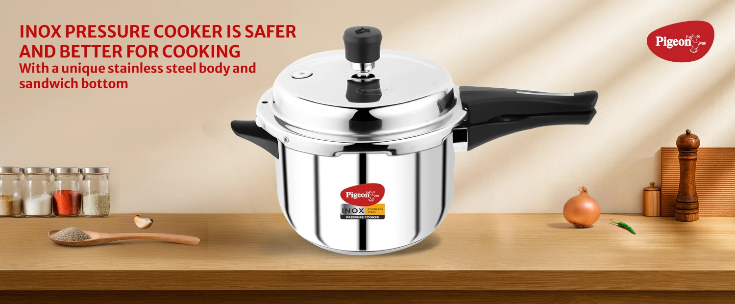 Switch to a healthier way of cooking with Pigeon’s Inox Pressure Cooker, a technology that’s safe, durable and a better way to preserve nutrients and vitamins in your food.