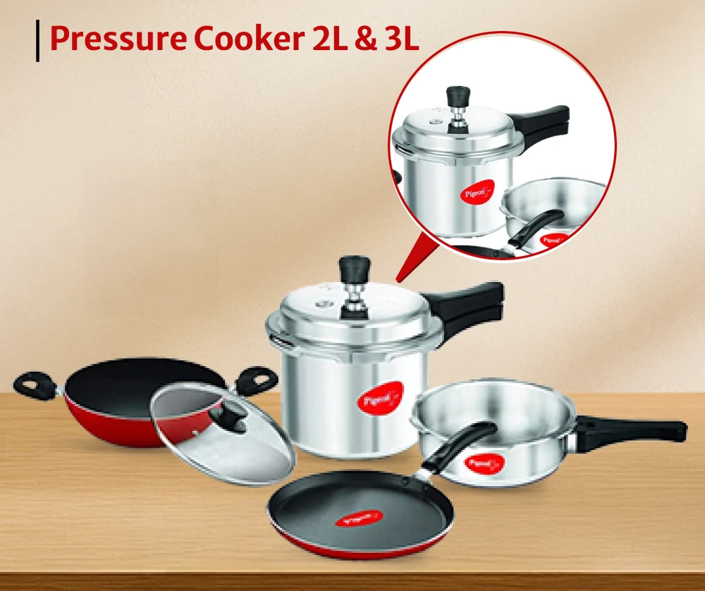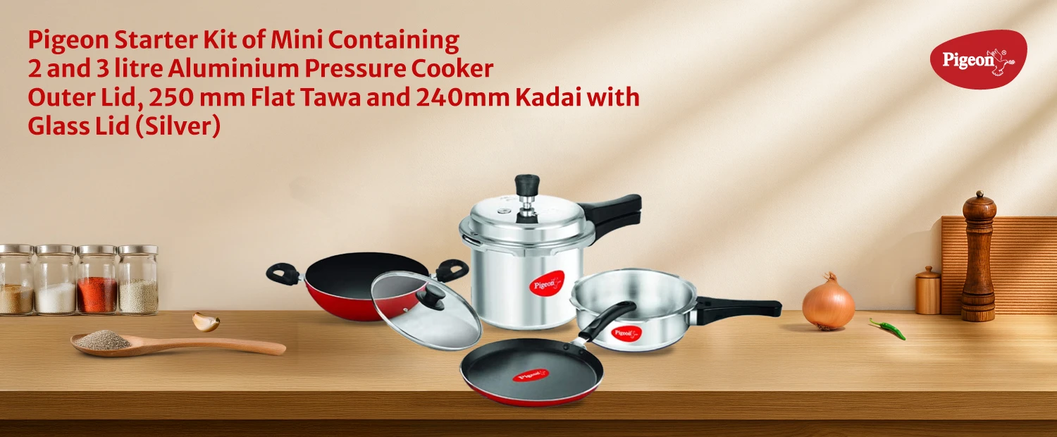 Home / pigeon / cooking / pressure-cookers / started-kit-35-l-5-l-pressure-cooker-fry-pan-tawa-kadai