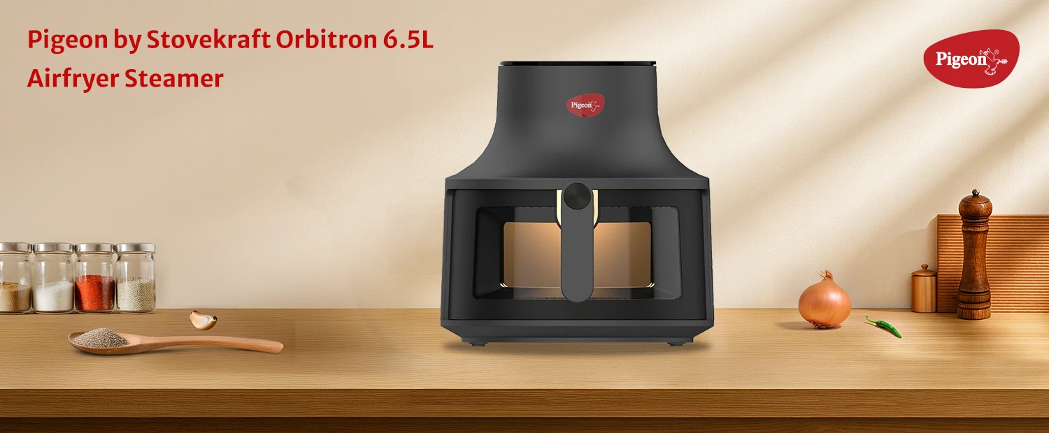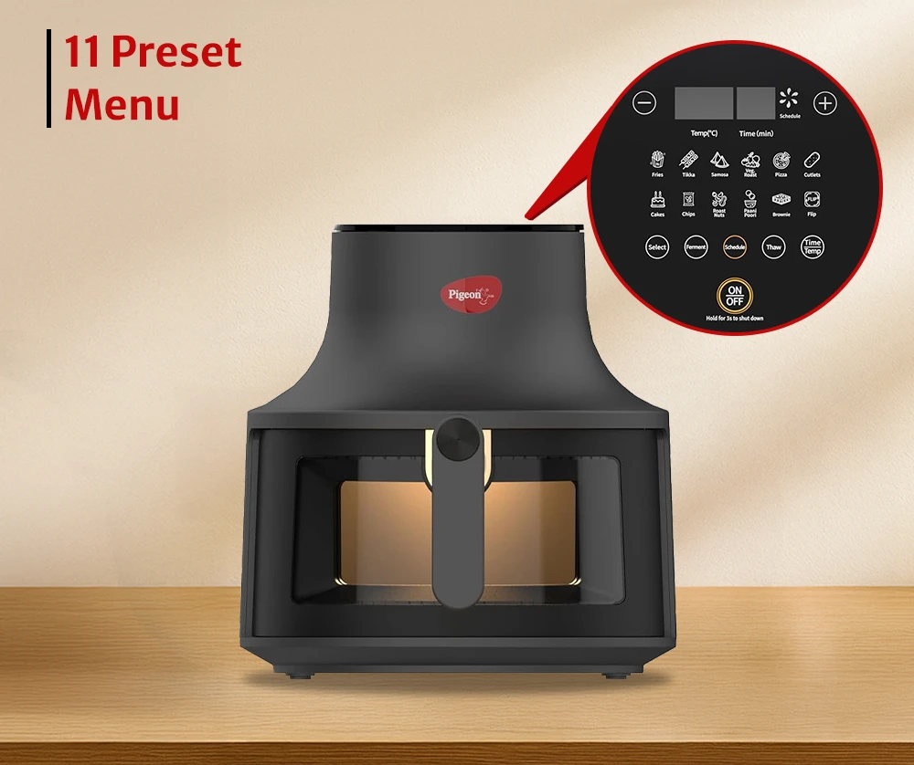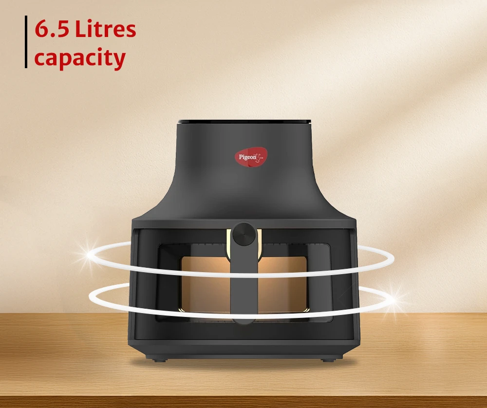 High-capacity air fryer with orbitron airflow technology for even cooking.