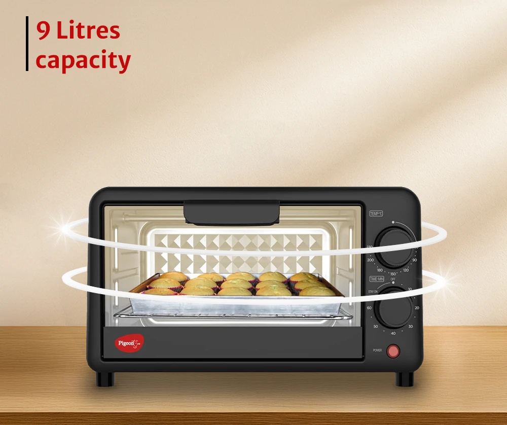 Spacious countertop oven designed for versatile baking and grilling with easy temperature control.