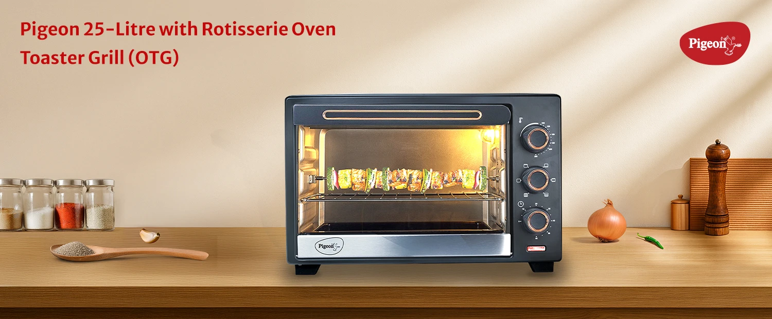 Medium-capacity OTG offering uniform heating with rotisserie support for consistent results.