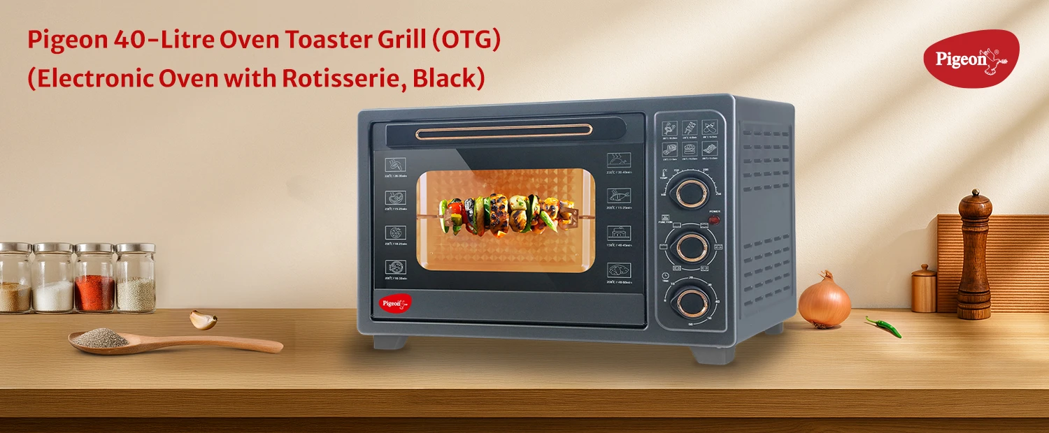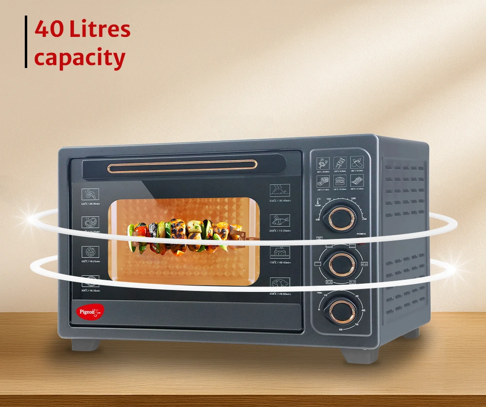 Extra-large OTG with rotisserie, suitable for multi-dish cooking and larger food portions.