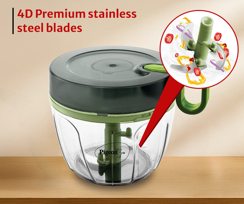 - Pigeon Handy Chopper Pro Large - This speedy manual chopper will help you cut vegetables, fruits and nuts. Makes smart work of tough cutting tasks and hassle free experience which saves up to 50% of your time.
