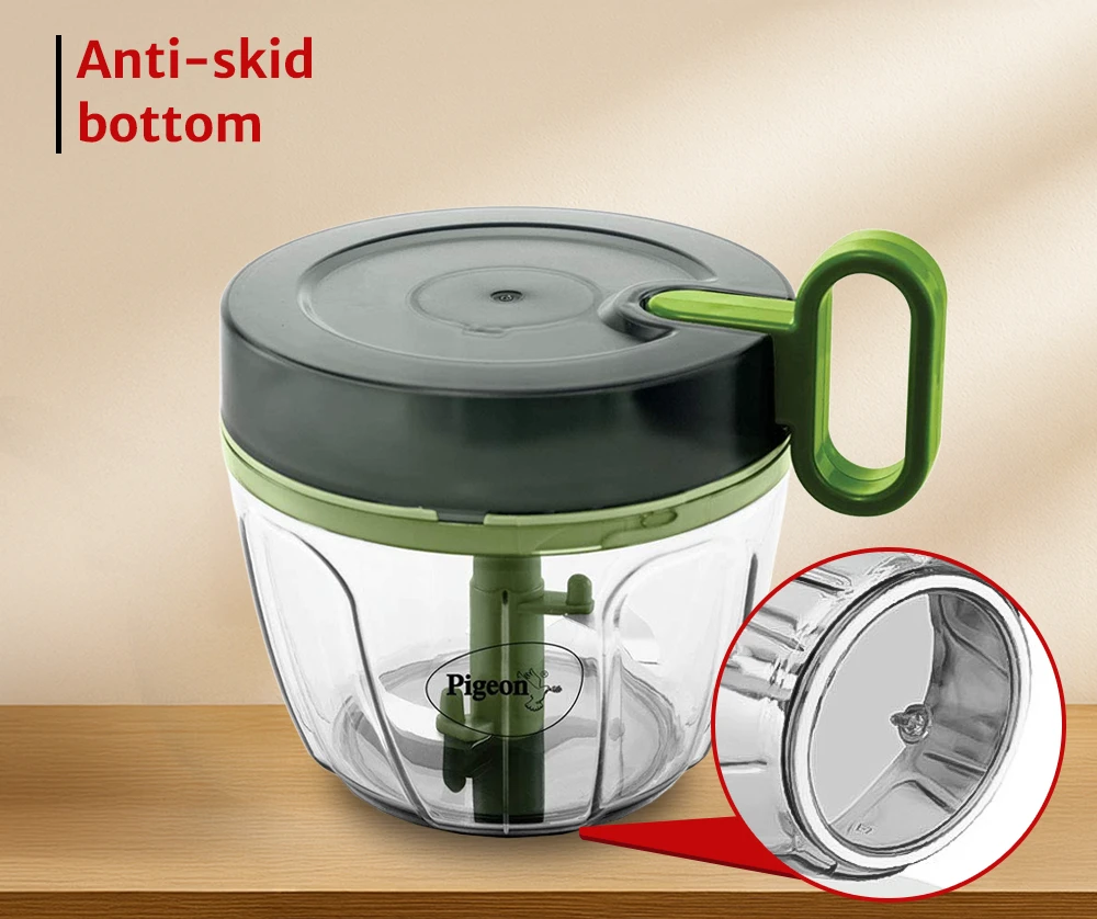 - Space Saving & Portable - Pigeon Handy Chopper Pro we can store very easily in our kitchen. This manual food chopper has advantage of simple structure, compact value, and convenience. 650 ml capacity is great for a family.