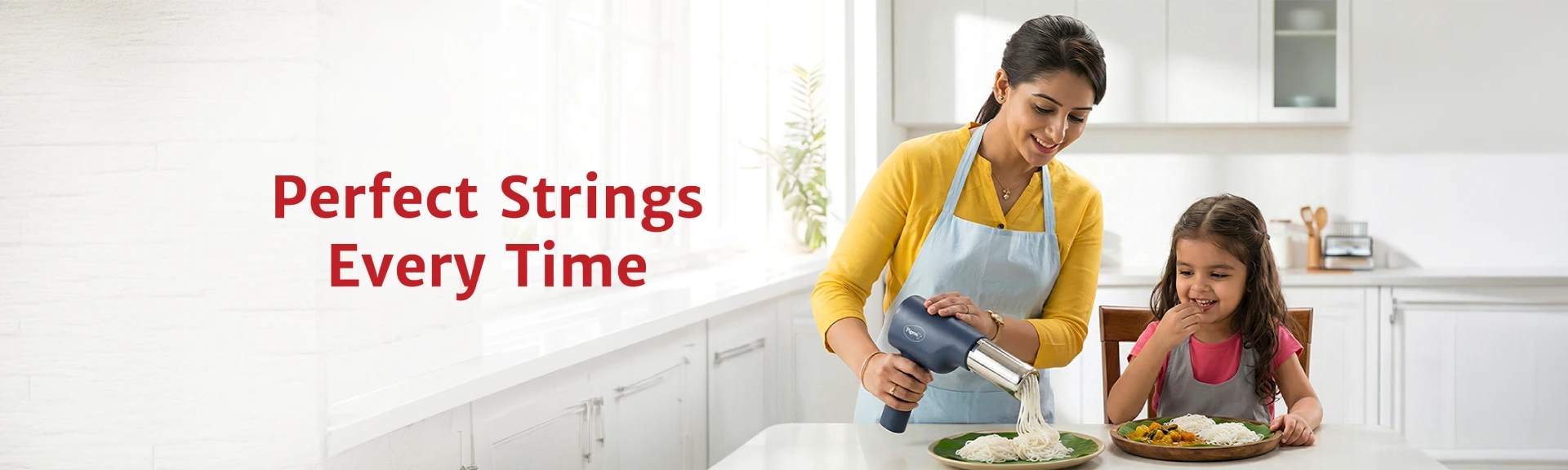 Easy-to-use maker designed for smooth and uniform idiyappam preparation.